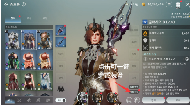 主武器、副武器、衣服、手套:可通过下图的快捷按钮一次穿戴到位。