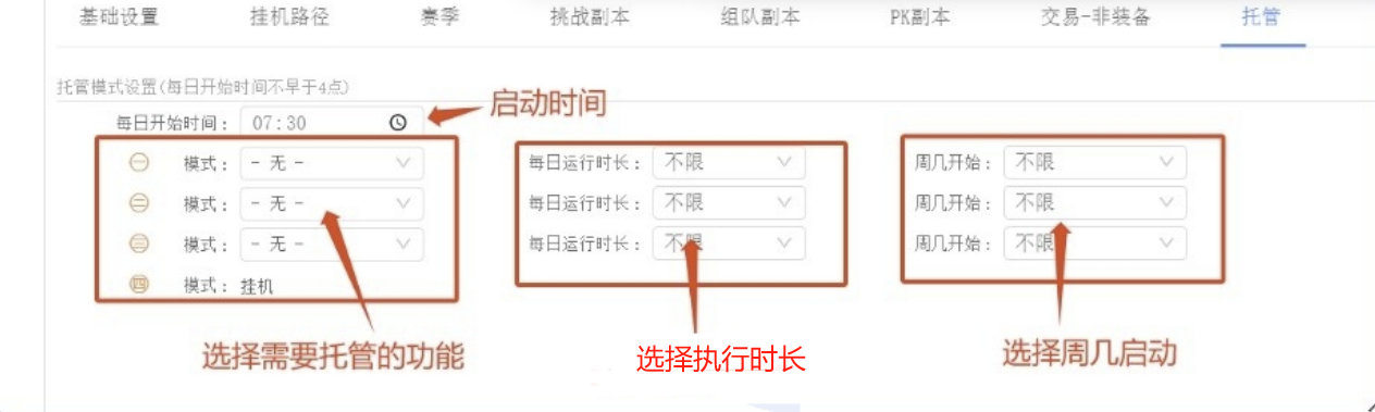 如图每天7点30会自动开启托管