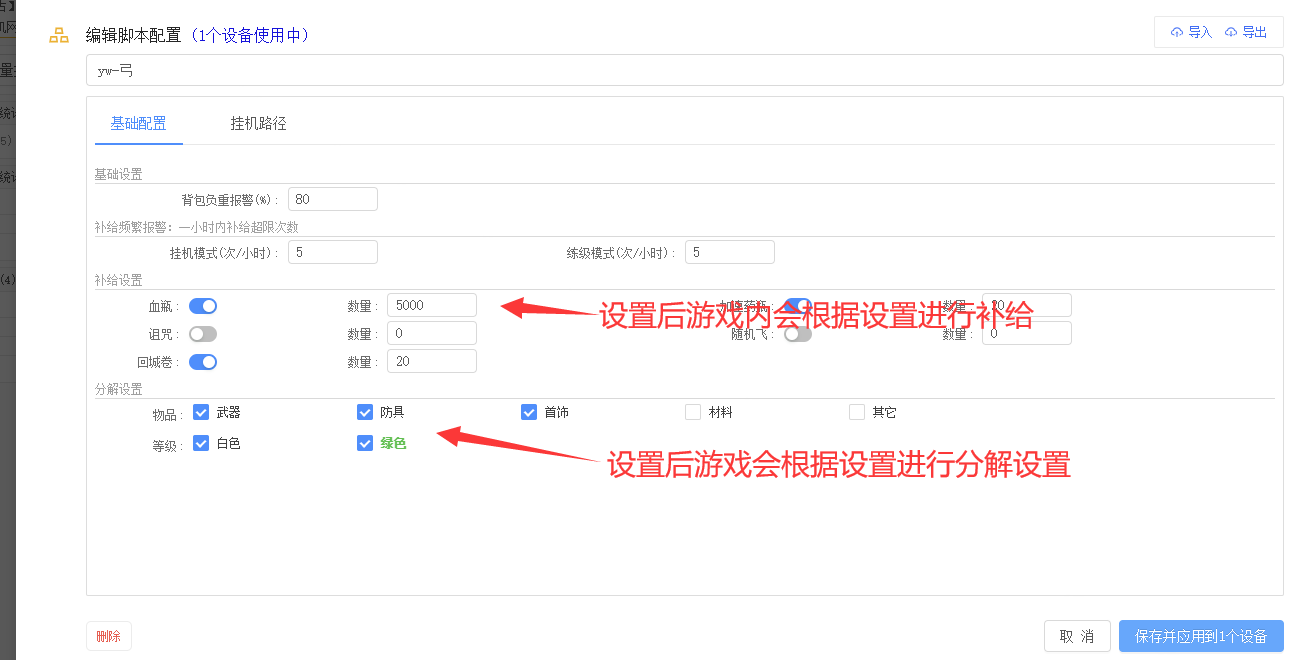 装备分解(脚本设置界面设置后会自动设置需要保留装备时请关闭)