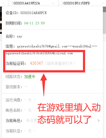 返回游戏里在输入框输入动态码(动态码变化需要重新打开菜单刷新