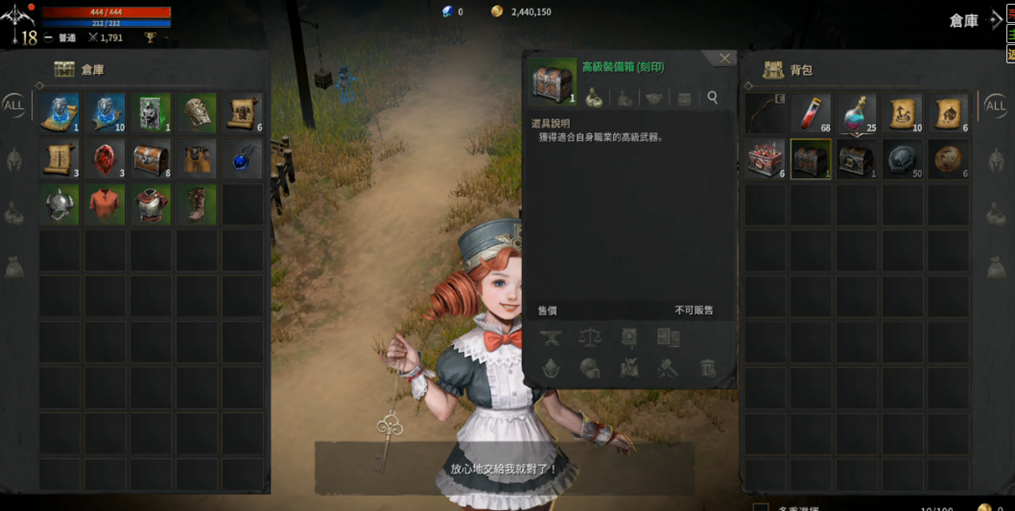 最后把次角色获得资源存进仓库主角色取出使用(可以先制作好装备存入)